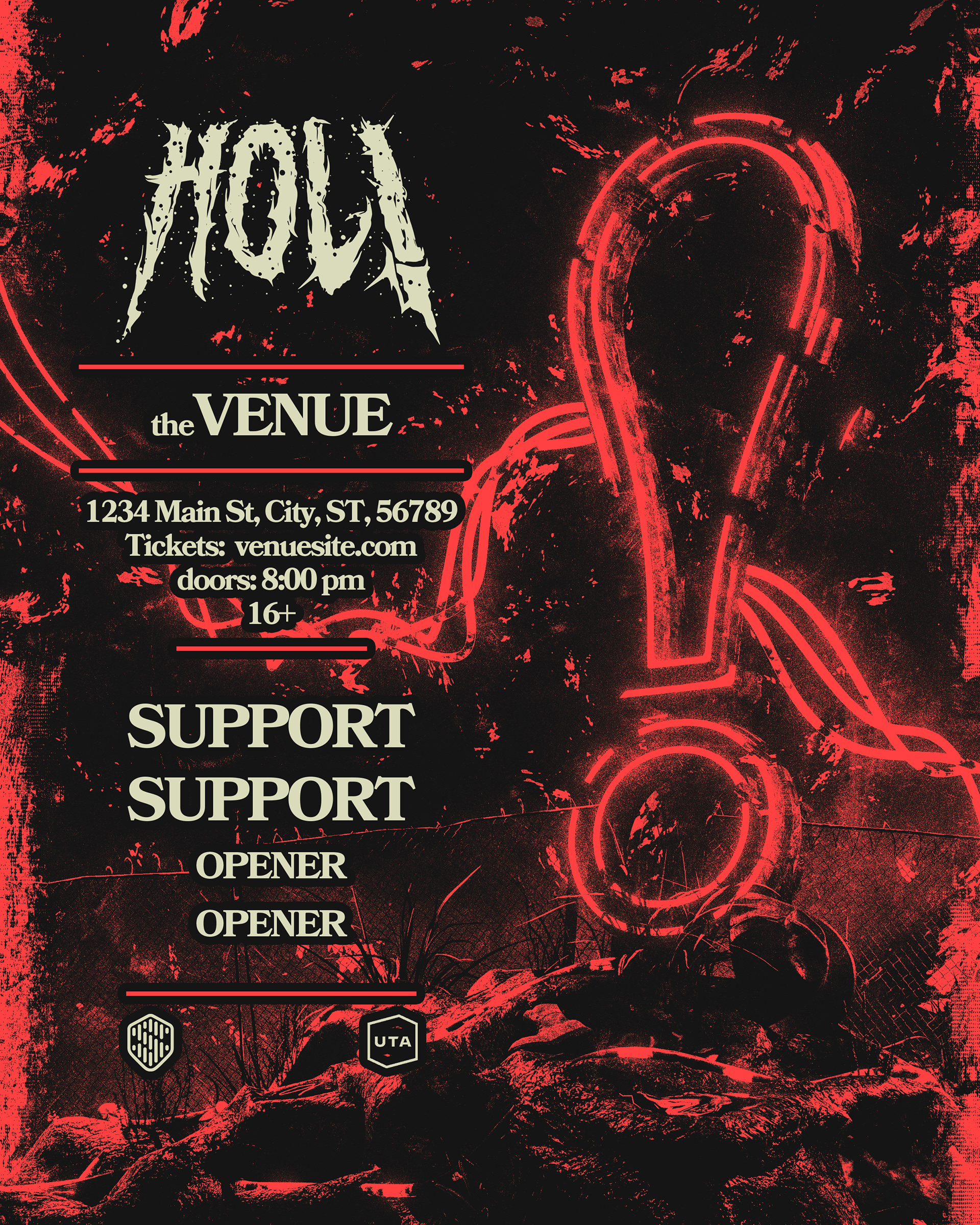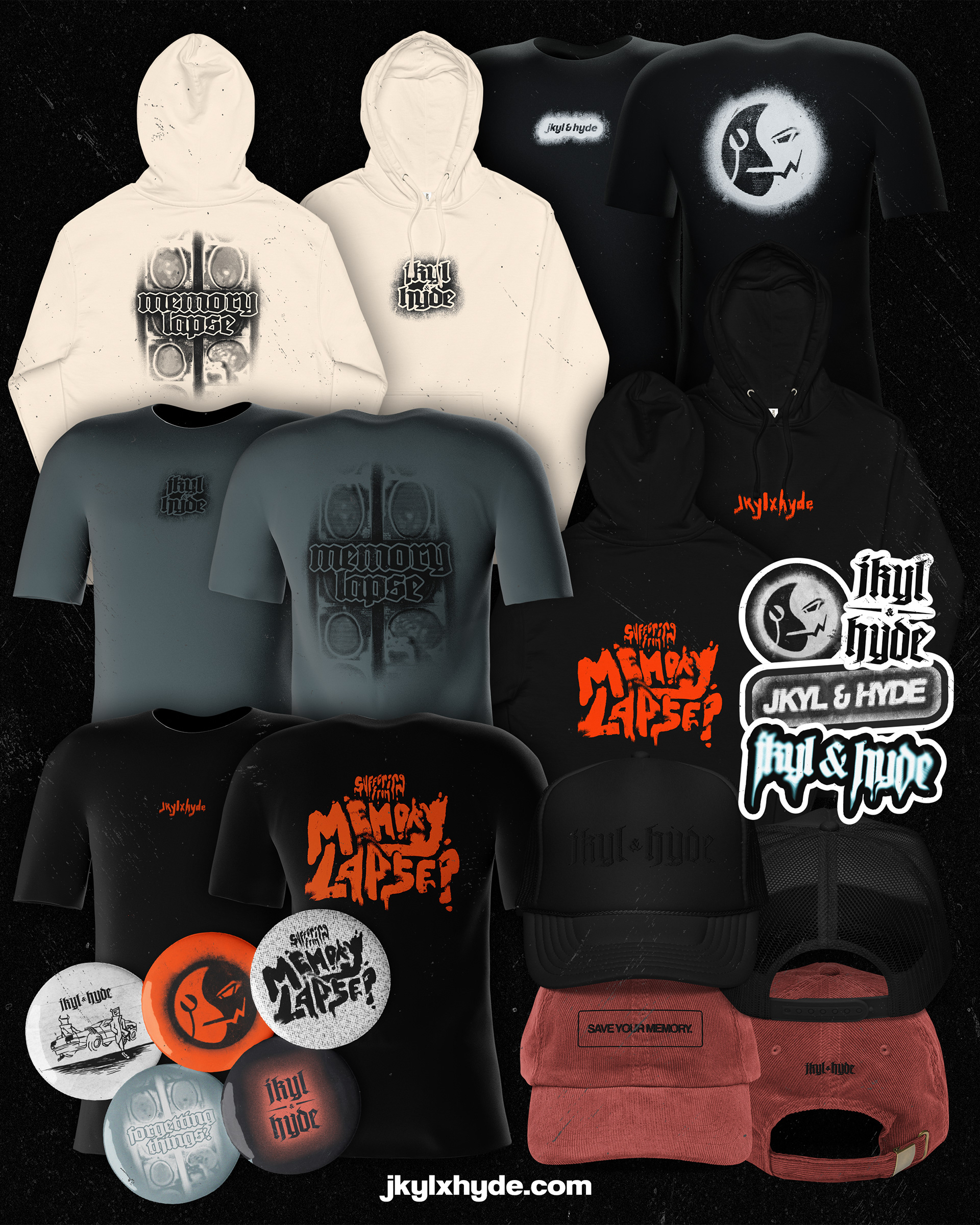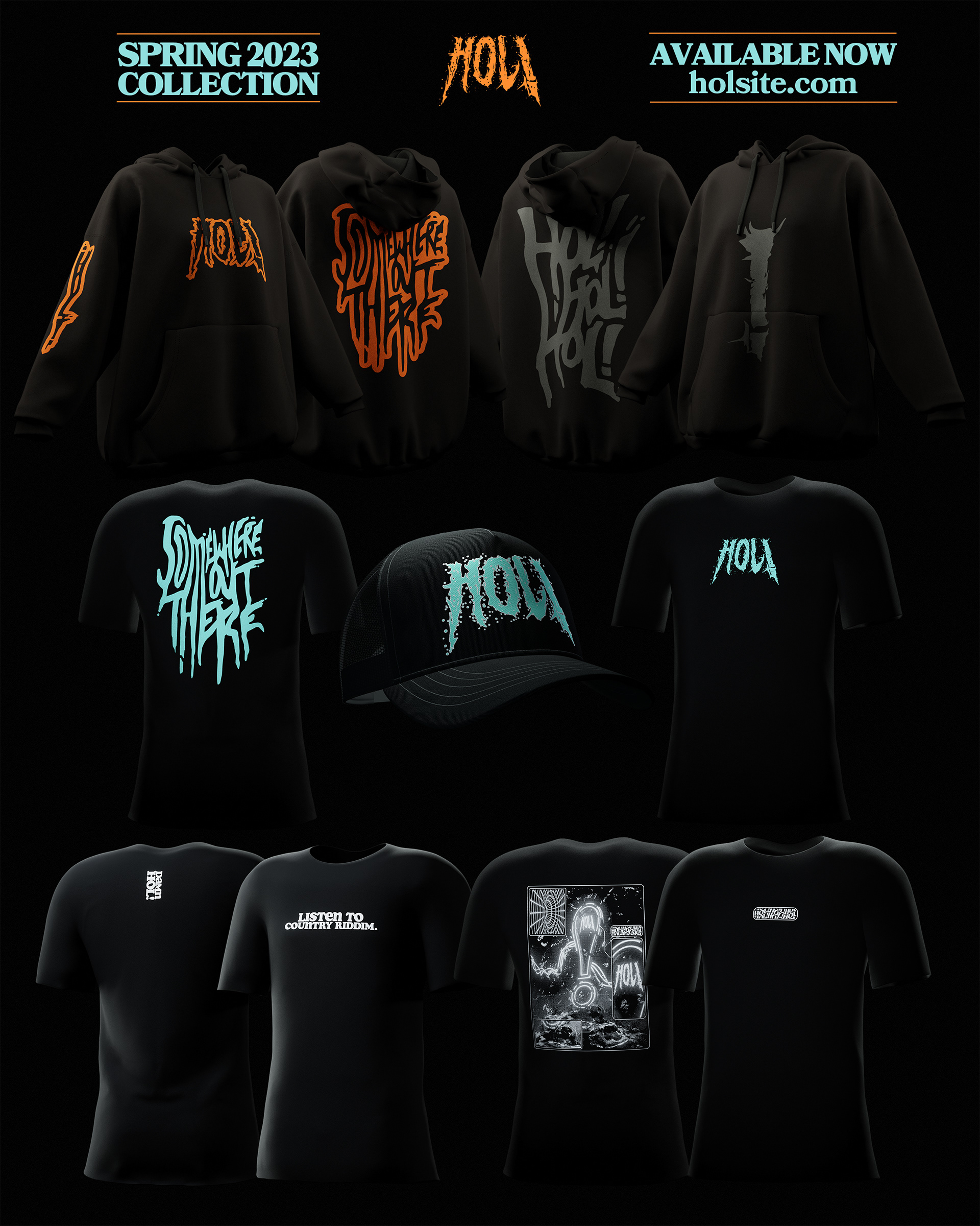 Various merch designs, posters, tour flyers, and graphics done for commissions.