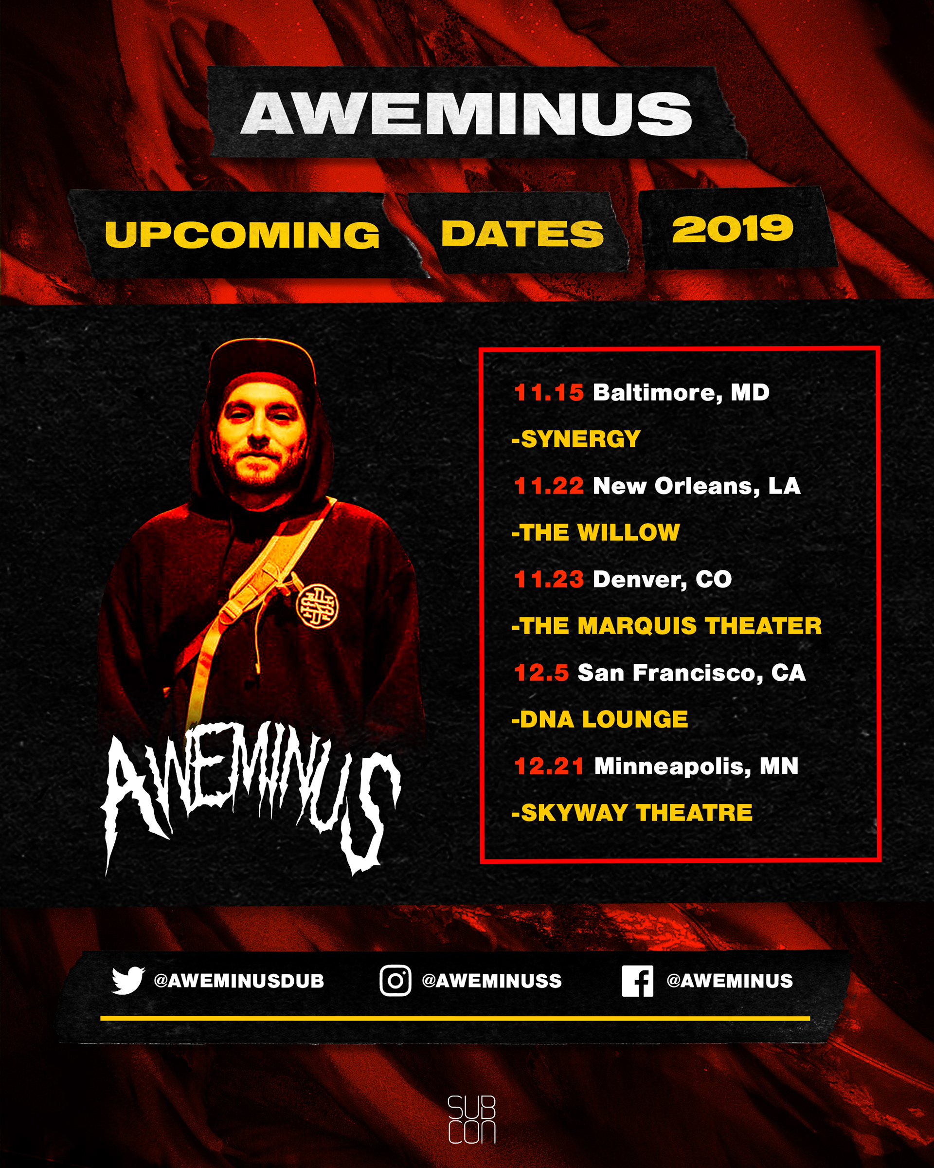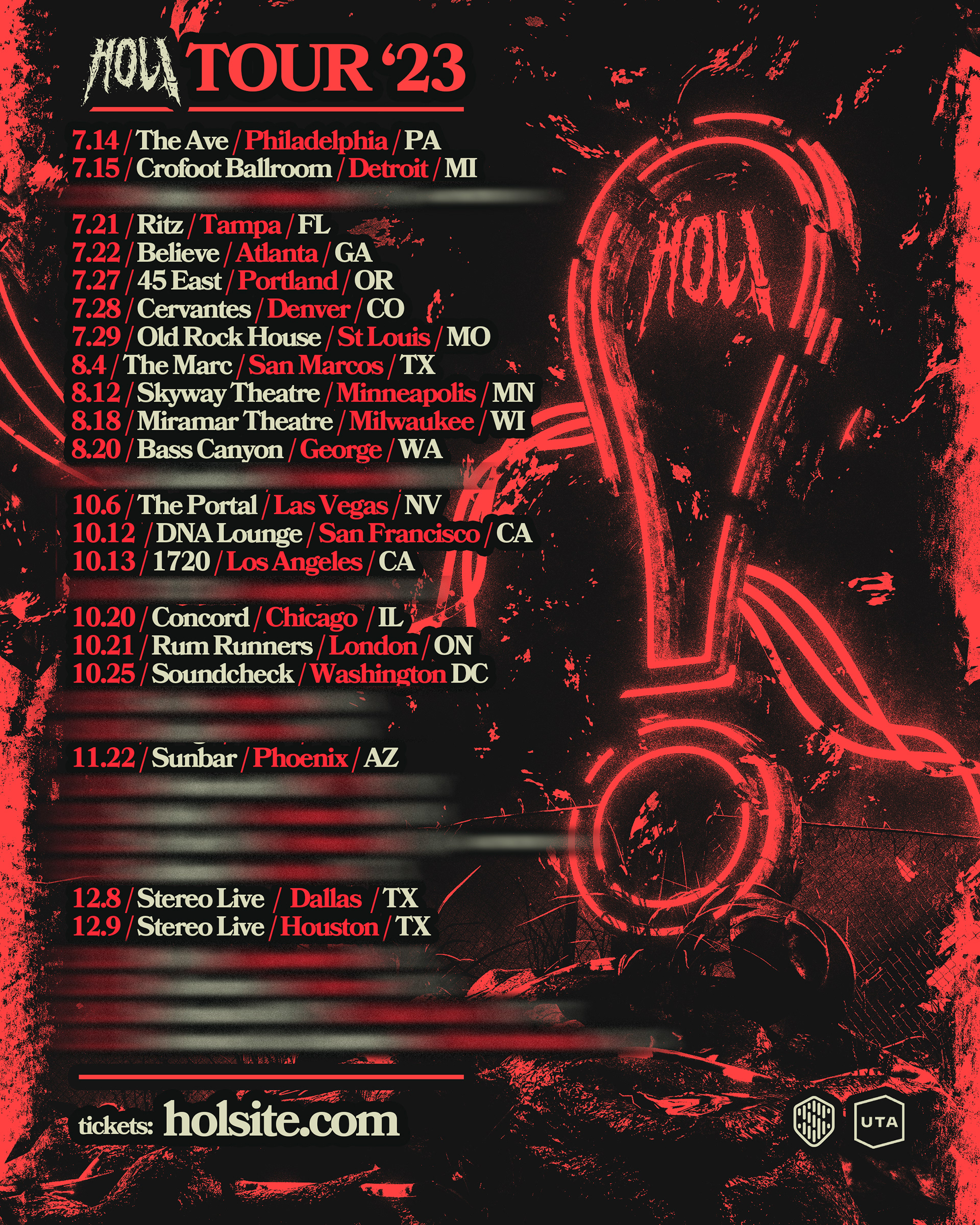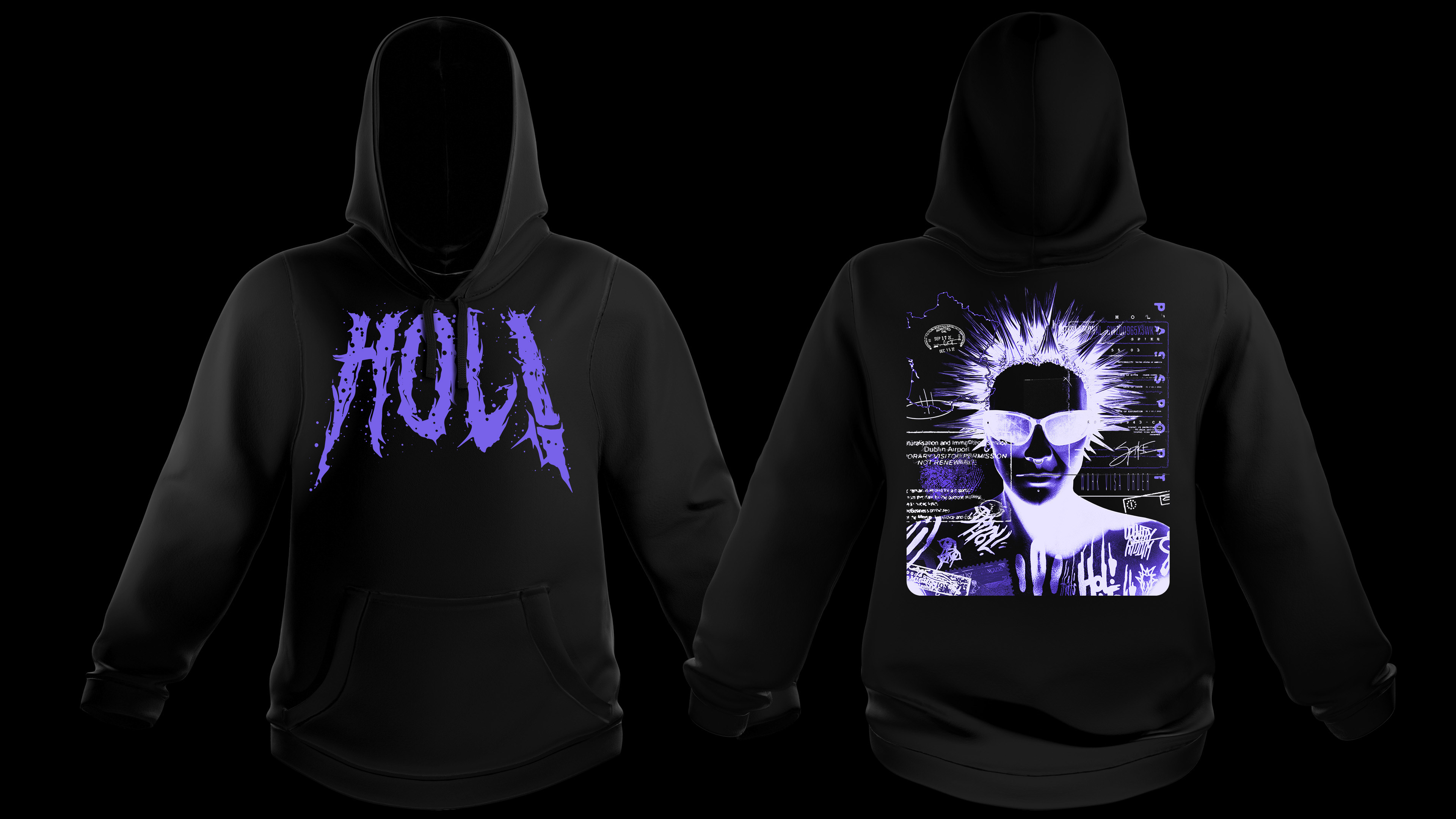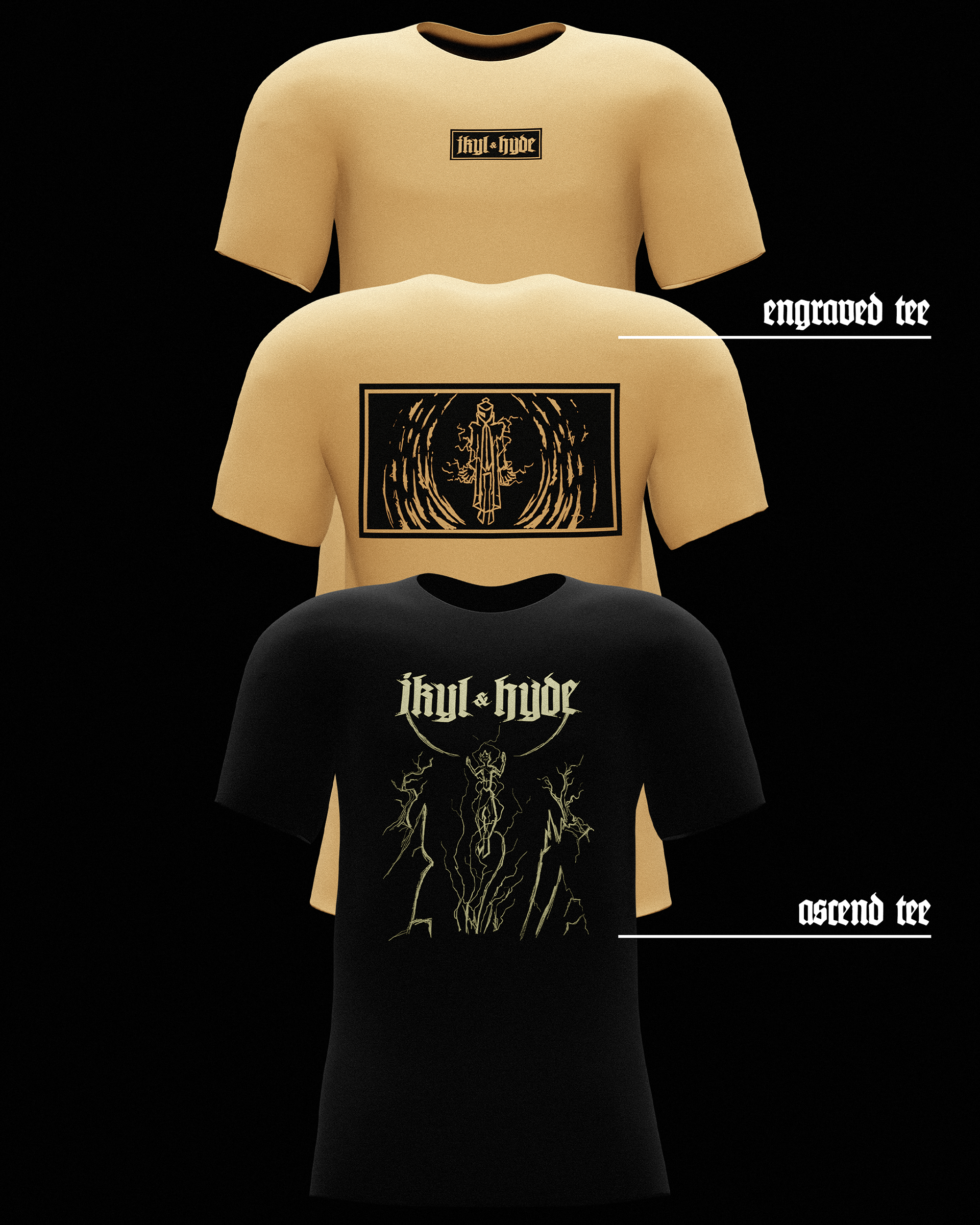 Various merch designs, posters, tour flyers, and graphics done for commissions.